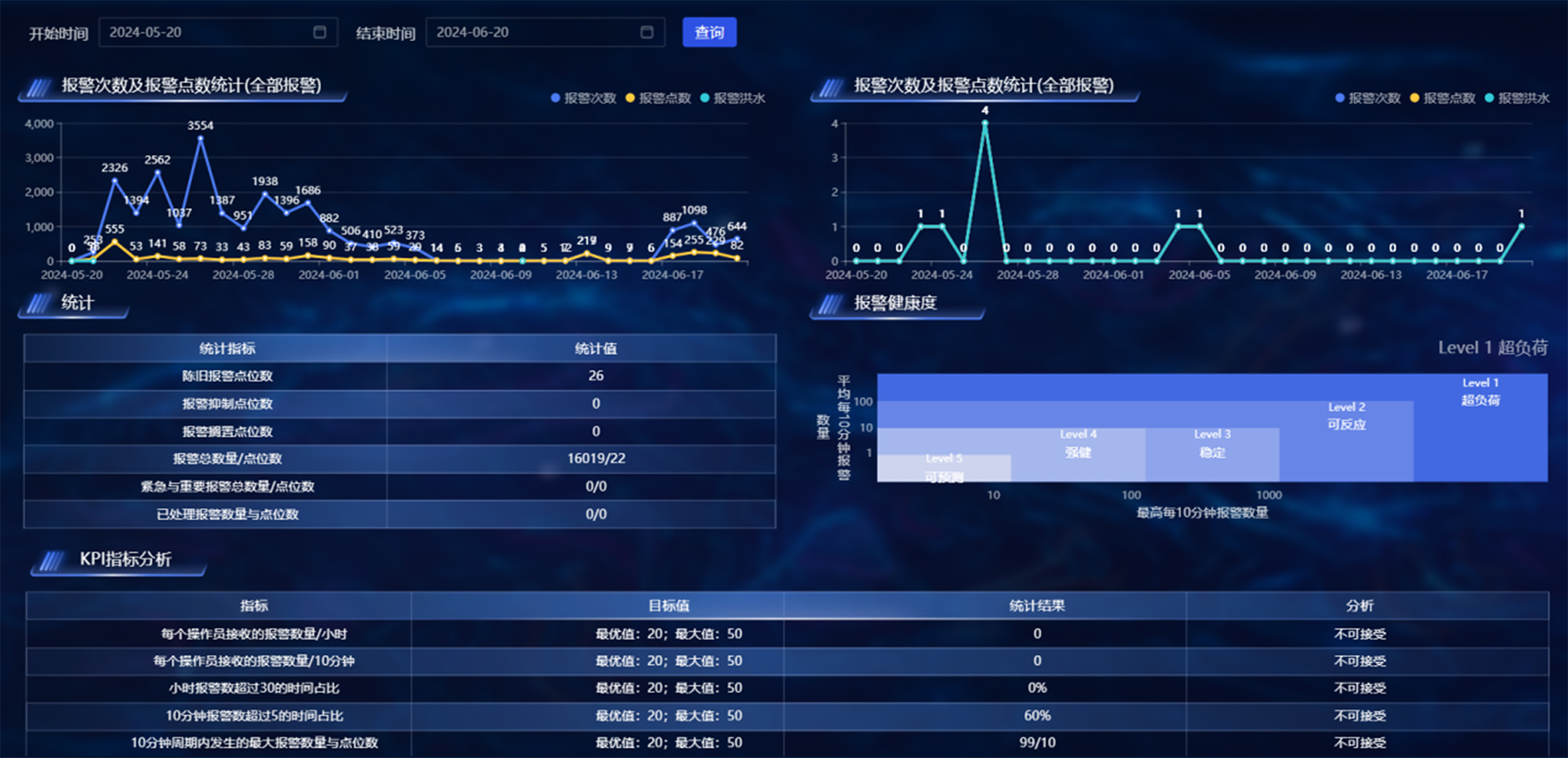 具備報警數(shù)據(jù)多維度分析評估功能,實現(xiàn)對生產(chǎn)過程中報警的在線實時監(jiān)測與故障分析,為裝置人員進行報警處置與消除優(yōu)化提供指導;