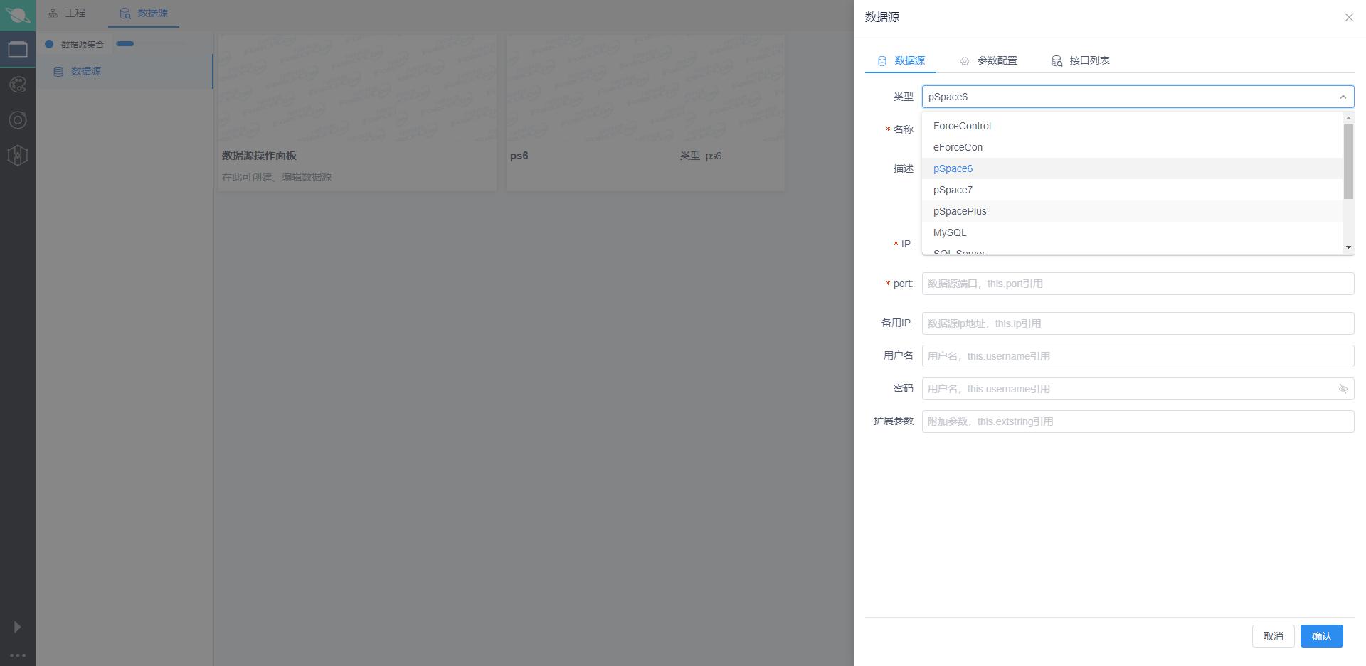 數據源為我們FSmartworx數據來源,選擇我們數據源的類型后,配置數據源的信息后,在接下來的組態時即可調用數據源內的數據。