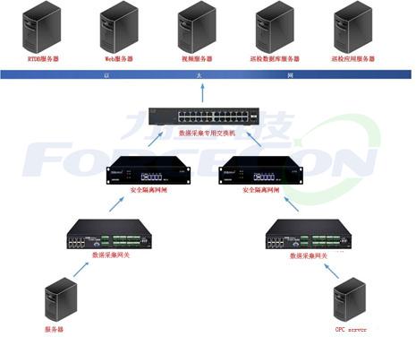 內(nèi)操巡檢系統(tǒng)采用PFC-HK6510數(shù)據(jù)采集網(wǎng)關(guān)通過DCS系統(tǒng)的OPC接口采集重點(diǎn)路線上巡檢數(shù)據(jù)。經(jīng)過安全隔離網(wǎng)閘隔離后以CommServer 協(xié)議將數(shù)據(jù)上傳到pSpace數(shù)據(jù)庫。利用CommServer協(xié)議的斷線緩存功能和pSpace 實(shí)時(shí)數(shù)據(jù)庫的數(shù)據(jù)回補(bǔ)功能,保證數(shù)據(jù)的完整性和準(zhǔn)確性。通過.net接口將內(nèi)操巡檢系統(tǒng)的實(shí)時(shí)報(bào)警信息推送到智能巡檢平臺(tái)。Web服務(wù)器上安裝了FsmartWorx軟件,通過FsmartWorx自帶的圖形編輯功能,將內(nèi)操巡檢監(jiān)控點(diǎn)位以圖形和表格等多種方式展現(xiàn)。FsmartWorx 工程界面運(yùn)行后,能根據(jù)每個(gè)頁面的URL地址單獨(dú)訪問特定的頁面。在巡檢平臺(tái)設(shè)置相應(yīng)的標(biāo)簽,嵌入相應(yīng)巡檢裝置頁面的URL地址,實(shí)現(xiàn)了內(nèi)操巡檢與智能巡檢平臺(tái)的無縫融合。