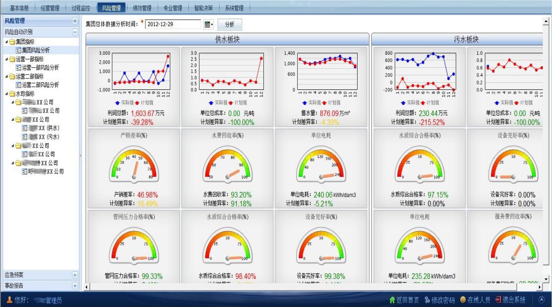 以eForceCon系列產品eForceCon、pSpace、Finforworx實現污水廠集中運營管理、設備管理等業務系統的深度集成、整合,并對采集的數據進行數據分析,得到各種相關的指標,為管理人員提供指標分析、合理的控制運營管理方案。