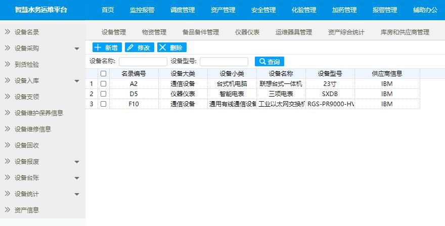 相關的設備設施,實現從臺帳、維護保養、檢維修、檢定、報廢等全生命周期的管理。實現設備遠程管控與運維。記錄設備的運行情況,對設備的運行狀態、執行效率、能耗情況等進行實時跟蹤與監控、分析與優化。