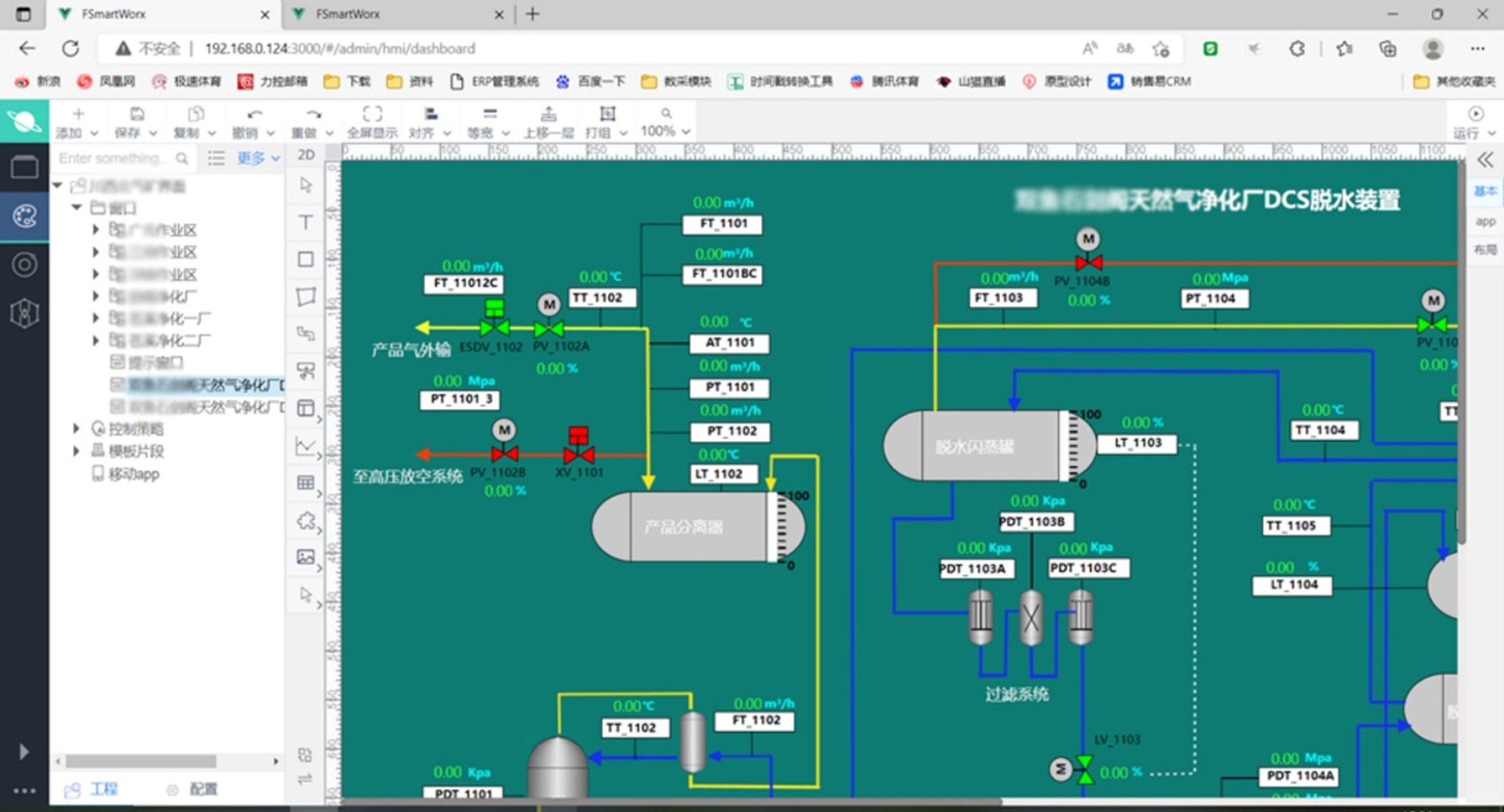 通過力控云端綜合可視化平臺FSmartWorx的畫面組態工具,用戶可以方便快捷地定制開發工藝流程圖、相關開關量、設備的運行/停止、模擬量的實時變化等,圖形目標的前景色、背景色及目標的動態移動方向均可任意制定并動態變化。可根據不同用戶角色開放訪問及修改權限。