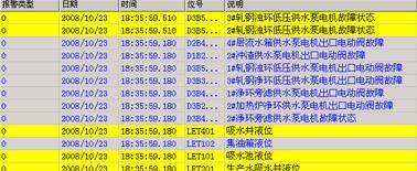 模擬量數(shù)據(jù)在水處理監(jiān)控系統(tǒng)主監(jiān)控畫面中都已顯示出來,包含文字說明和單位,其中液位還以圖形化百分比填充方式顯示液位的變化,非常直觀,當(dāng)該模擬量如液位發(fā)生超限(低于低限和高于高限時)時將報警,以畫面閃爍和聲音方式提示控制室值班人員。