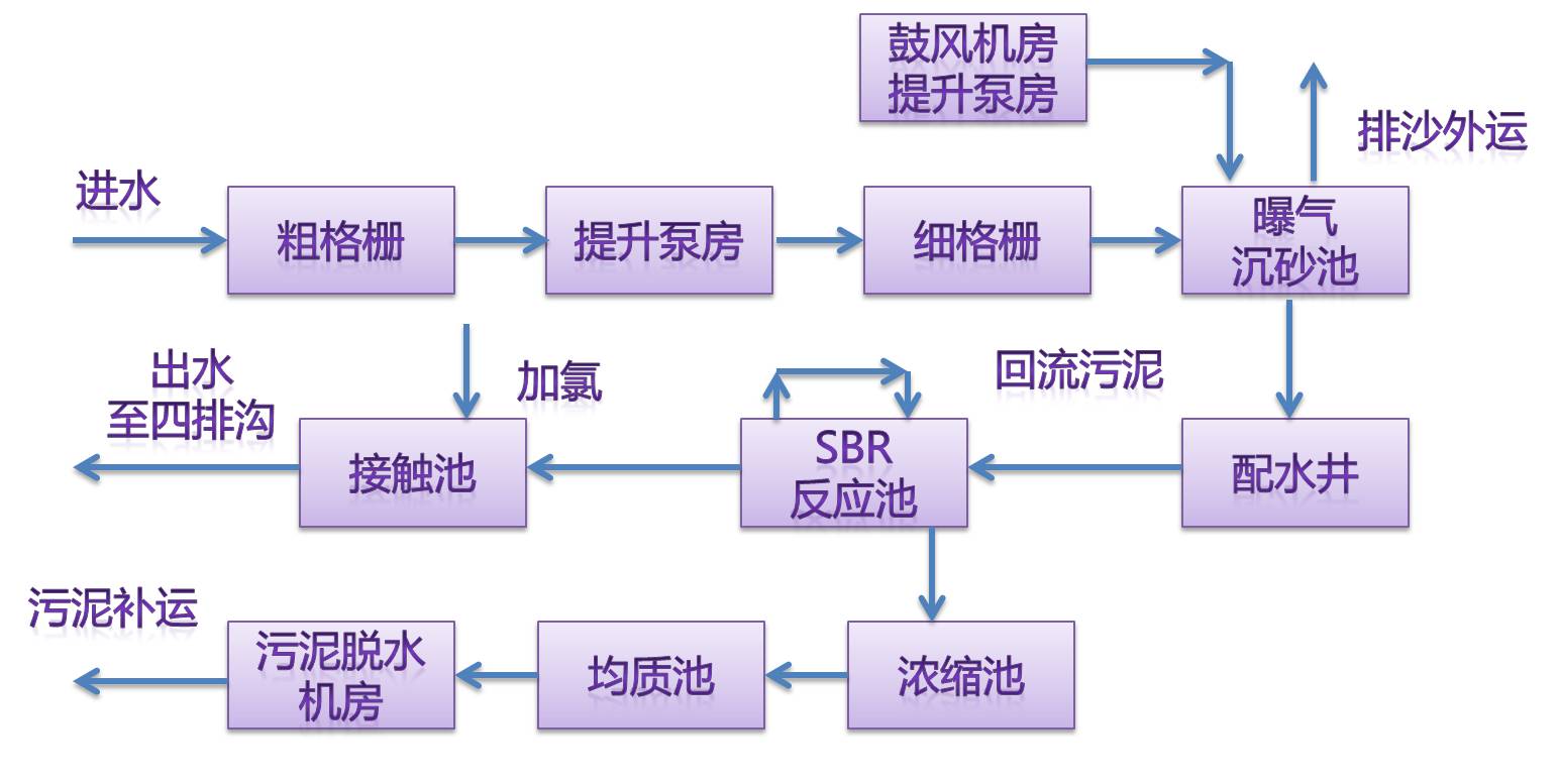 以昌黎污水廠為例,簡要介紹污水處理工藝流程。昌黎縣污水處理廠是被國家列入“三河三湖”、“渤海碧海”水污染治理的重點項目。日處理污水能力達到4萬噸,污水處理后可達到《城鎮(zhèn)污水處理廠污染物排放標準》一級A標準,排放水質可直接用于農田灌溉。初步污水處理工藝采用MSBR工藝即序批式活性污泥處理工藝;污泥處理工藝推薦采用帶式濃縮、脫水一體機濃縮脫水;消毒工藝采用紫外線消毒。污水經(jīng)處理后作為中水排入附近深化處理塘進行自然凈化,最終全部回用。該項目投入運營后,每年可以減少近千萬噸的污水排放量,不僅大大改善該縣城區(qū)居民的居住環(huán)境,而且對改善該縣及周邊地區(qū)的海域水質起到關鍵性的作用,對縣域經(jīng)濟社會的可持續(xù)發(fā)展具有重要意義。