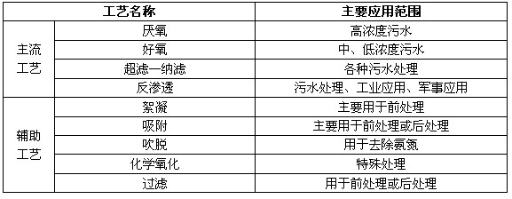 目前國內外滲濾液的處理工藝有生物處理、物化處理、土地處理等多種。一般情況下須將兩種以上處理技術合理組合, 處理后的滲濾液才能達標排放。下表所示為常用垃圾滲濾液處理工藝。