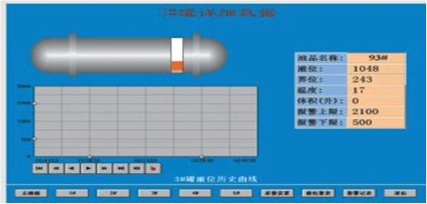 4)歷史數(shù)據(jù)查詢與管理:可以曲線的形式顯示各監(jiān)測參數(shù)隨時(shí)間變化的曲線,同時(shí)對最大最小值及平均值進(jìn)行顯示。實(shí)時(shí)計(jì)算和顯示油庫油品存量,用棒圖和數(shù)據(jù)表顯示所有油品的即時(shí)存量和空容量、體積、質(zhì)量。在無進(jìn)出油品的狀態(tài)下,可判斷油罐有無泄漏。