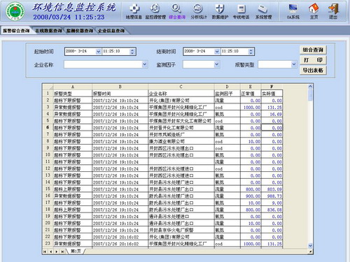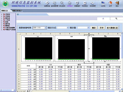 提供多種條件查詢方式和查詢結果分類、分項排序、統計最大值、最小值、平均值、匯總值等分析處理功能。提供統計各類監測數據功能,如流量統計;COD、氨氮濃度分析;COD、氨氮排放總量統計;煙氣流量統計;煙氣、煙塵、CO、SO2、NOx濃度分析;煙氣、煙塵、CO、SO2、NOx排放總量統計等,提供查詢結果打印功能。
