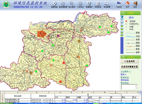 對于企業的排放匯總數據按指定的時間段進行列表和圖形方式分析,并可實現與收費管理系統結合。列表分析以表格的方式給出上述數據,圖形方式通過曲線、柱狀和餅狀等圖形直觀的顯示。