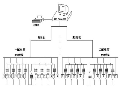 中層:力控系統中的個人計算機安裝與下位儀表通訊接口軟件和工程師、操作員使用的圖形動態監控軟件ForceControl,即可對變電所的輸配電狀況進行動態監控。