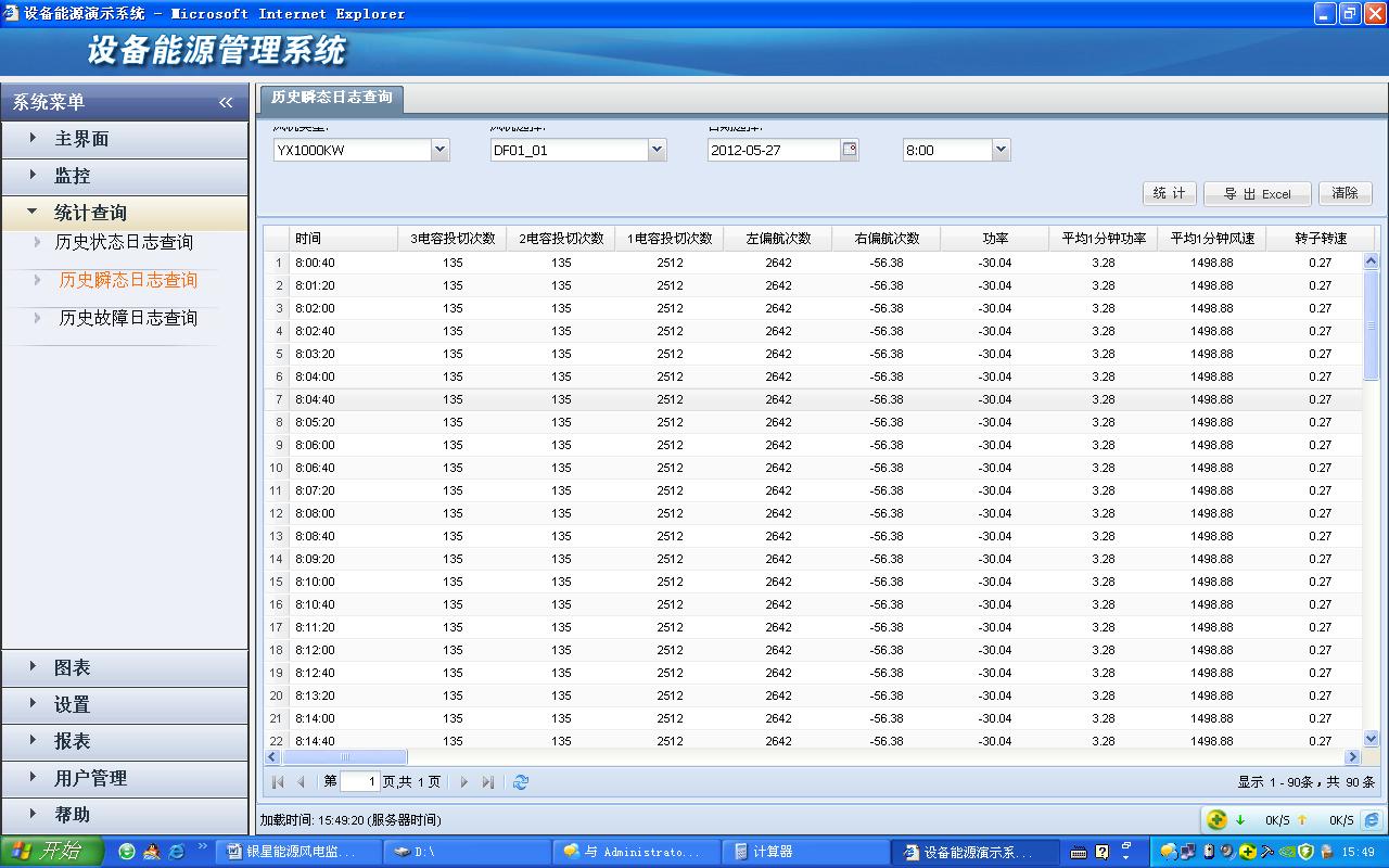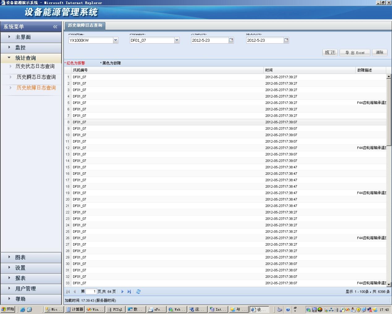 1) 歷史狀態日志查詢:根據選擇風機及時間段,查詢風機的歷史工作狀態。