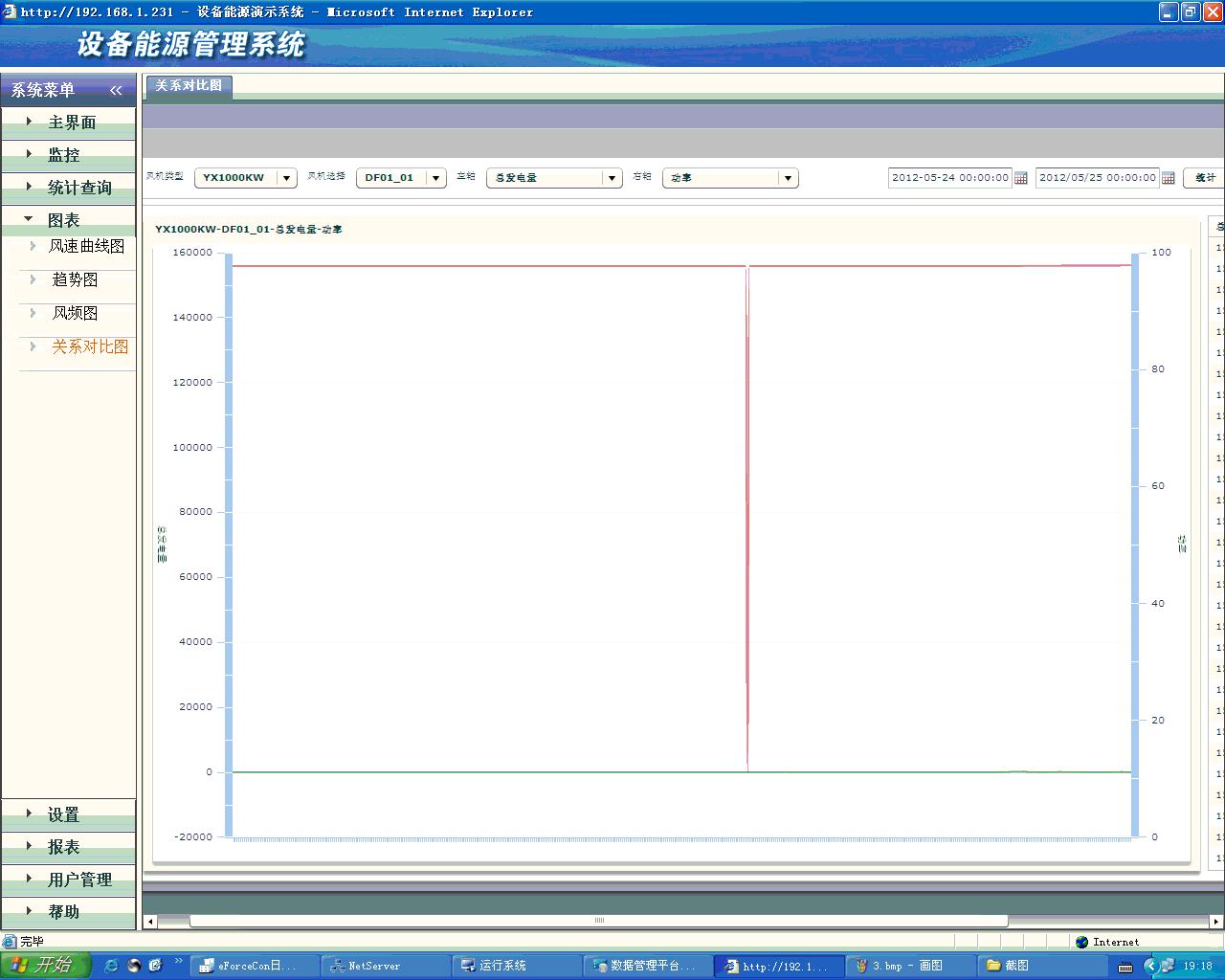 4)關系對比圖:在同一曲線控件內同時顯示兩個不同變量在同一時間段內的線性對比關系。