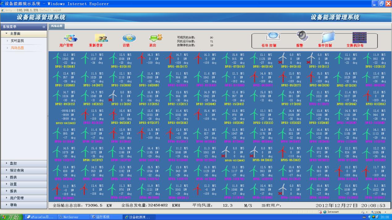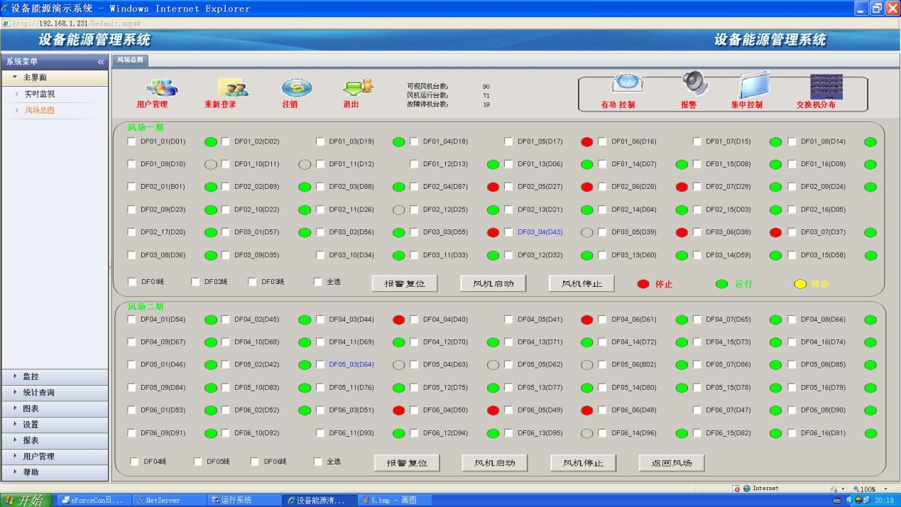 4) 實時控制風場內所有風機的啟動、停止、復位等功能。