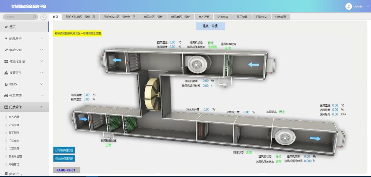 新風(fēng)及空調(diào)智能運(yùn)行:在自動(dòng)模式下,綜管平臺依據(jù)實(shí)時(shí)季節(jié)、天氣及溫度設(shè)定參數(shù),向數(shù)據(jù)接口下發(fā)風(fēng)閥、風(fēng)機(jī)、加濕等設(shè)備的控制指令,實(shí)現(xiàn)設(shè)備智能化運(yùn)行。