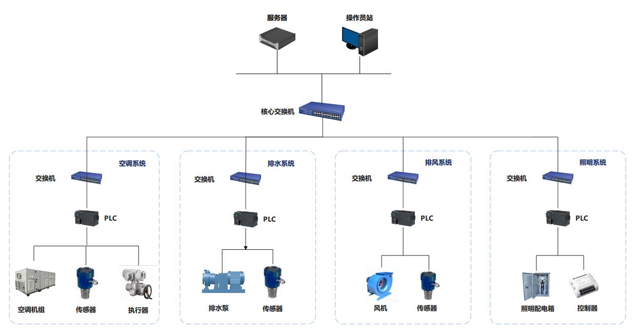基于力控SCADA進(jìn)行設(shè)計(jì)的樓宇自控BA系統(tǒng),旨在打造一個(gè)高度集成、智能化的管理平臺(tái),實(shí)現(xiàn)對樓宇內(nèi)各類設(shè)備的全面監(jiān)控與精準(zhǔn)控制。系統(tǒng)采用分層架構(gòu)(現(xiàn)場設(shè)備層、控制層、網(wǎng)絡(luò)層、管理層),依托穩(wěn)定可靠的網(wǎng)絡(luò)實(shí)現(xiàn)全層級數(shù)據(jù)互聯(lián)。