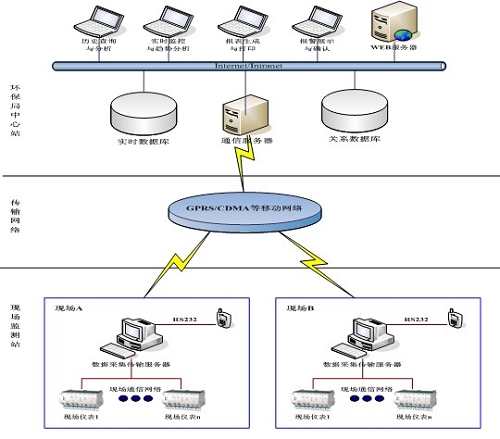 采用先進的SCADA軟件與物聯網技術相結合,對環保設備及關鍵運行參數進行實時監控,同時將采集到的數據存儲到遠端專用服務器,并以人機界面還原展示現場工藝過程,管理部門可以通過互聯網進行登陸、查看、監督,使監管更加有力、直觀、科學,杜絕了治理設施不運行的現象。