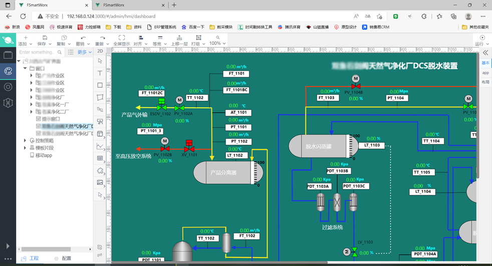 通過力控科技Smartworx平臺的畫面組態(tài)工具,用戶可以快捷,方便的開發(fā)定制工藝流程圖,相關(guān)開關(guān)量、設備的運行/停止、模擬量的實時變化等,圖形目標的前景色、背景色及目標的動態(tài)移動方向均可任意指定,并可動態(tài)變化。可按照不同用戶角色實現(xiàn)放開訪問及修改。
