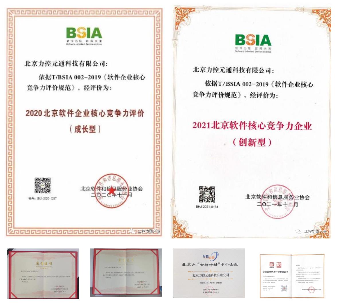 力控科技是北京市高新技術和軟件企業、北京市核心競爭力企業、北京市“專精特新”中小企業、中關村瞪羚企業。獲得了軟件能力成熟度CMMI3級認證、電子與智能化工程專業承包資質二級、ISO9001質量管理體系認證證書、信息系統建設和服務能力等級證書(CS2)等多項資質認證。