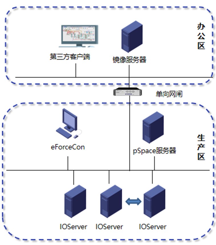 鏡像部署:由于采集網絡和辦公網絡信息敏感度不同,兩個網絡之間使用物理隔離,所以現場采集數據和管理數據是分離的,要把采集數據自動同步到辦公系統中用于業務分析,傳統的數據同步方式操作復雜,無法實時同步、穿透隔離網閘;使用鏡像服務器,可以穿透隔離網閘,自動保證兩個數據庫的數據一致。