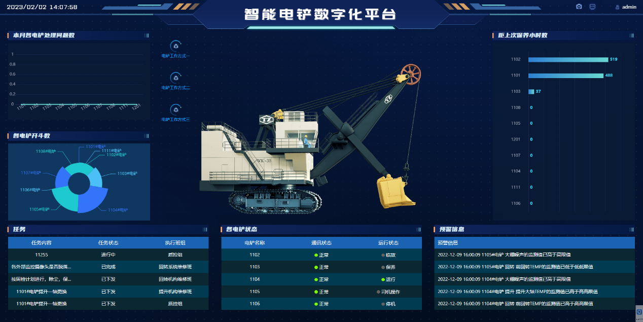 平臺通過智能化和大數據分析的先進技術手段對電鏟設備的故障做到早發現、早處理。確保了電鏟設備的正常運行,從而避免由電鏟故障引起的減產,影響公司的經濟效益。