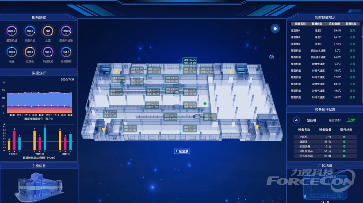 智慧廠務管理平臺ForceCon-FMCS為廠務中央監控與運維系統,可為工廠的信息生產及安全管理體系提供了很好的平臺,首先在體系中形成了原始的數據積累,為安全生產提供了數據分析保證,其次為企業提供了良好的管理手段,可以在生產運營中根據實際的情況調整管理方法,也為生產第一線的值班人員減輕了負擔,徹底解決在過去由人工巡視和人工記錄日志的生產模式,完全由計算機全天候自動化處理,同時也避免了由人為原因造成的安全隱患。可有效的將各子系統相連接起來,將工作效率大大的提高該系統采用客戶端/移動端/服務器相結合的系統結構、組態工具等先進技術,具有容量大、響應快、可靠性高、組態方便靈活等特點,能夠為實現管理現代化提供有力的支持。